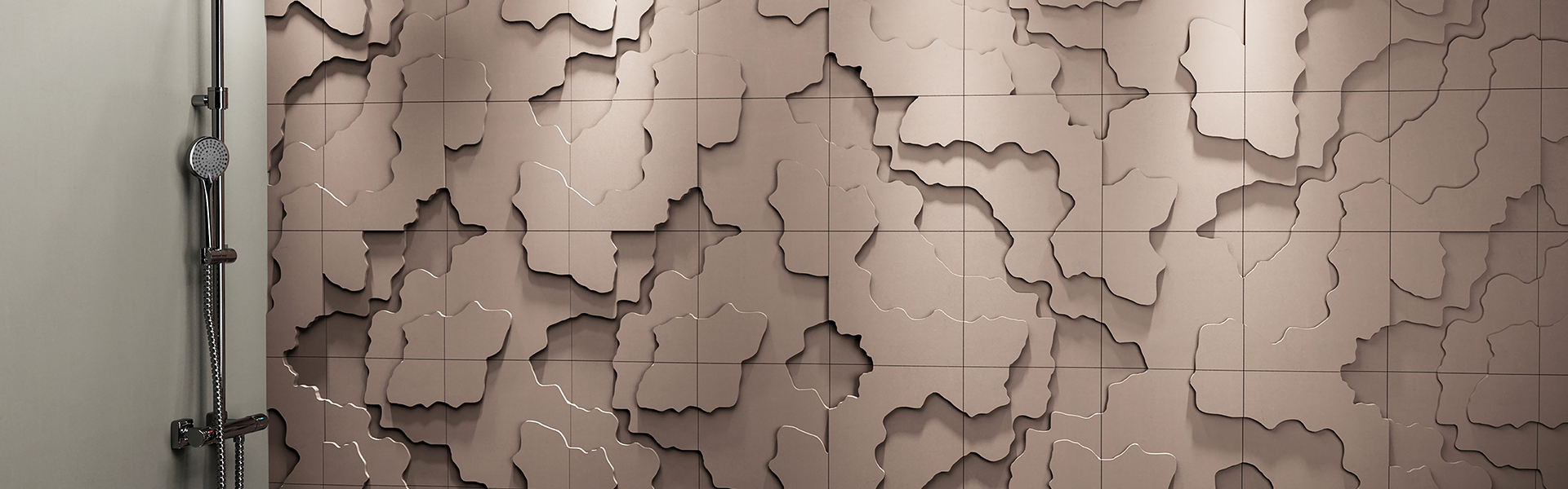 This 3D collection has a symmetric rhythm which gives exclusive atmosphere for large surfaces but it can also create the focus applied in smaller areas.