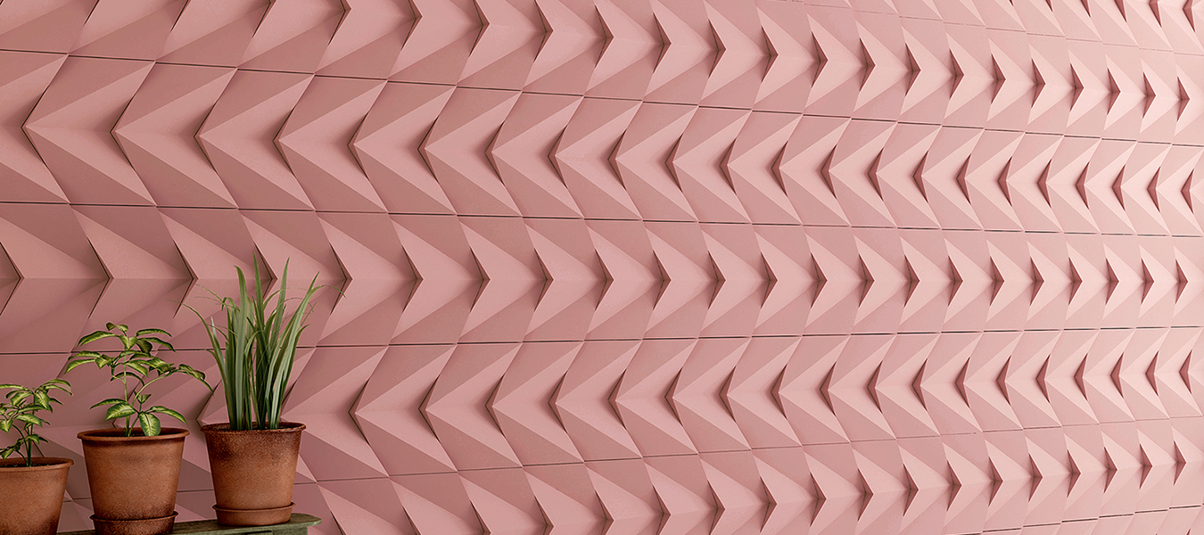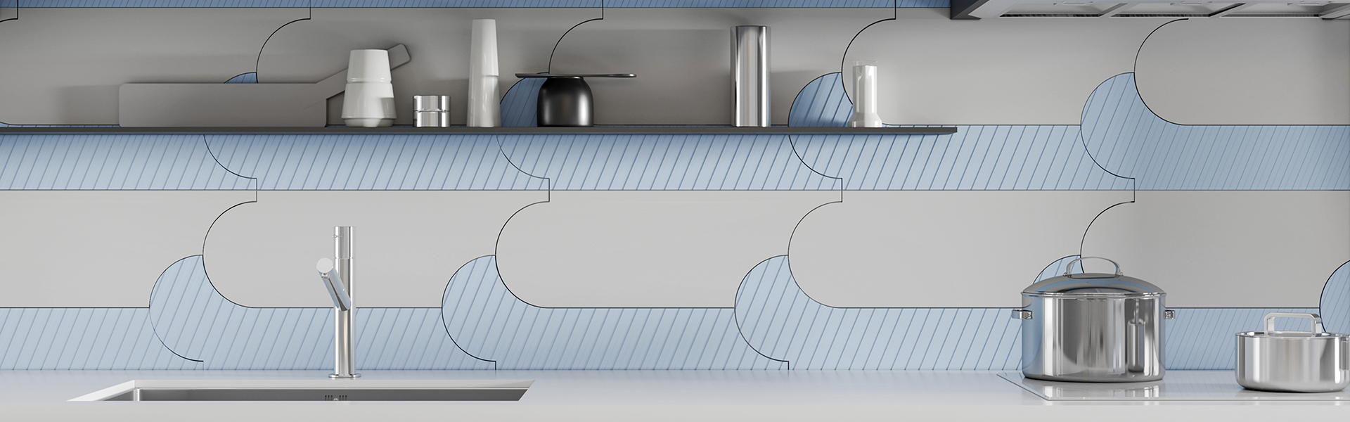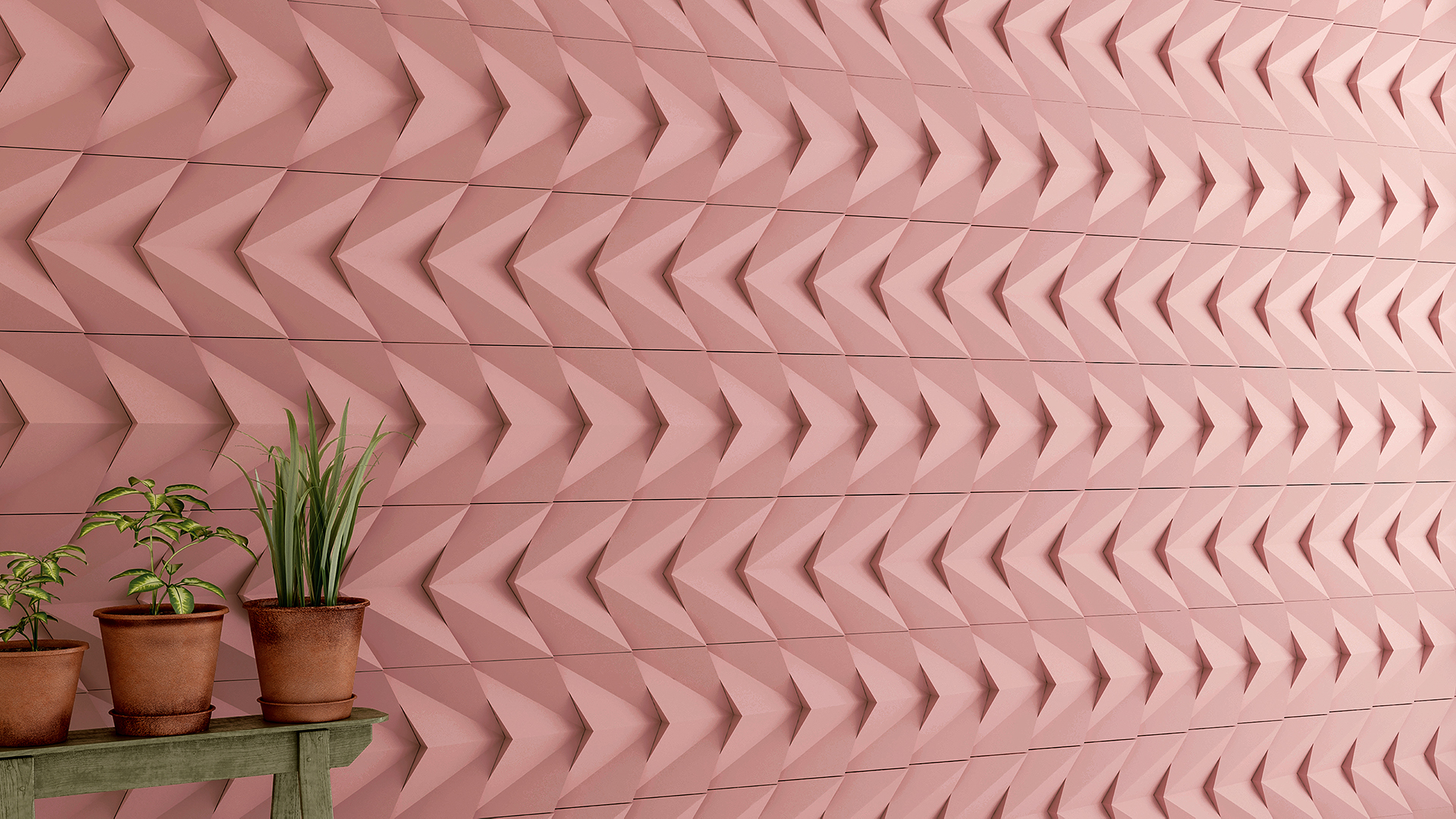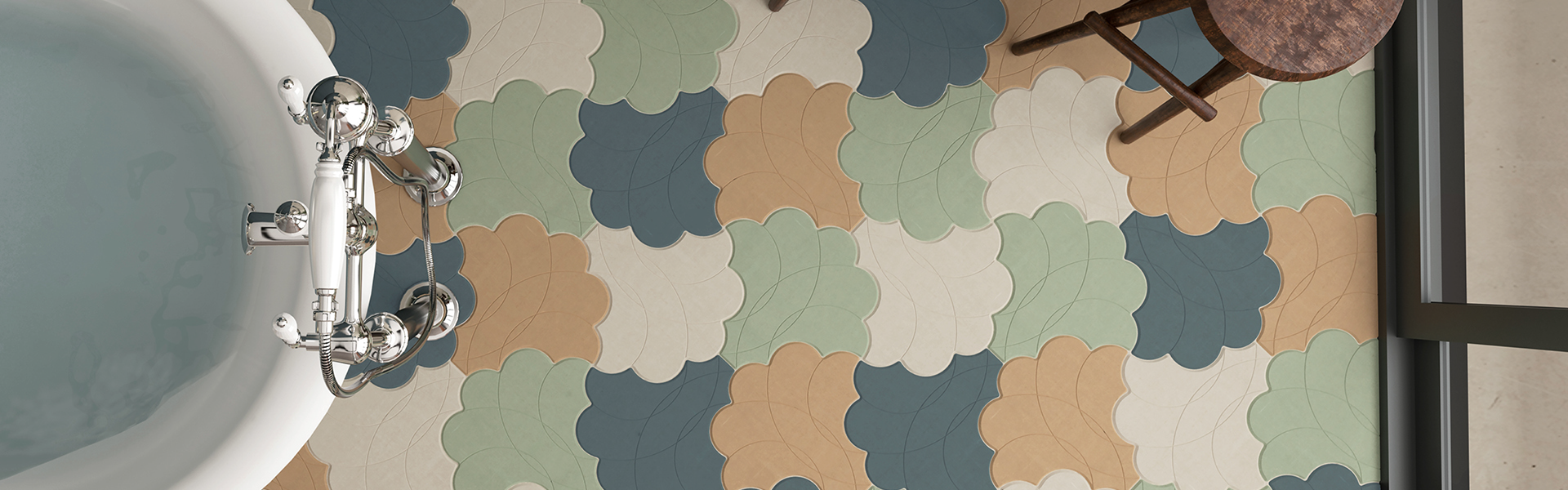The 3D optical play of this tile gives the impression of the delicate ruffles of the pinwheel. The plasticity of curved lines gives the dynamism of the collection.