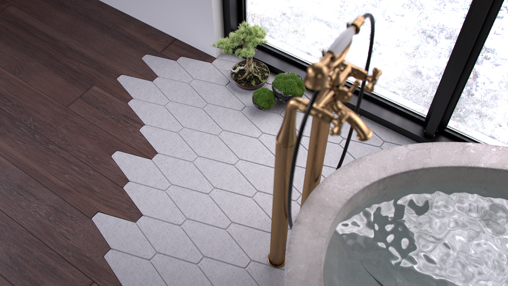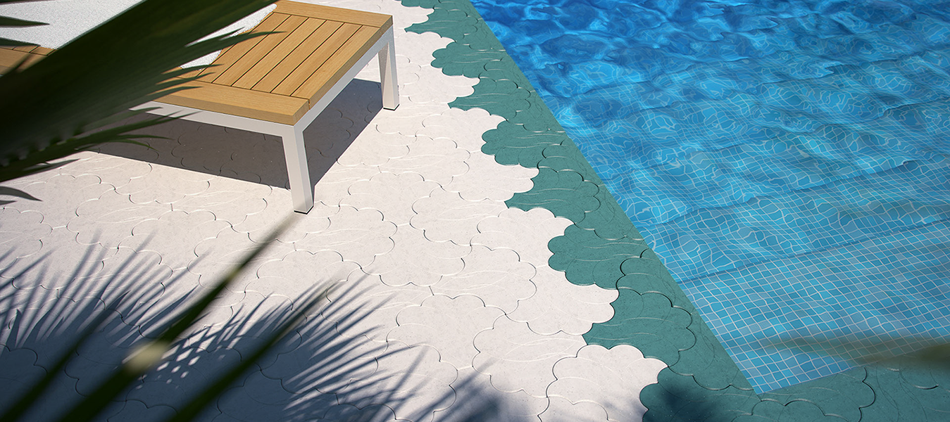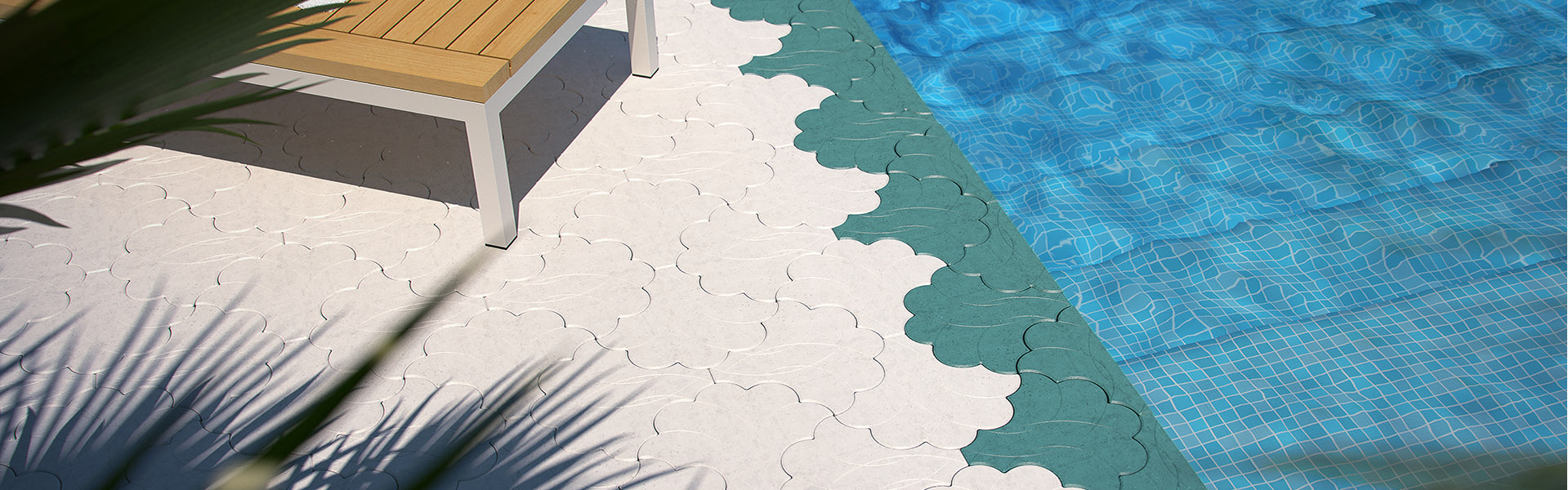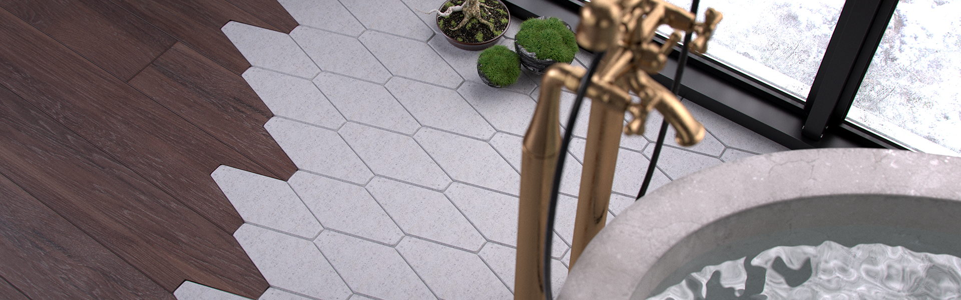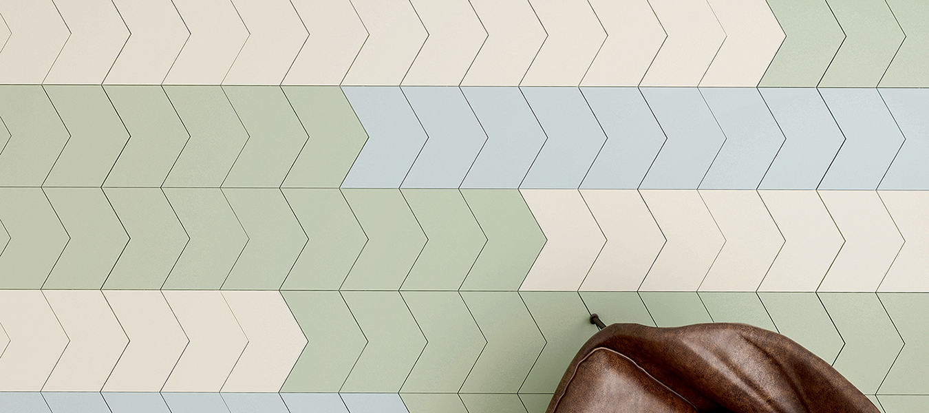 The 3D optical play of this tile gives the impression of the delicate ruffles of the pinwheel. The plasticity of curved lines gives the dynamism of the collection.