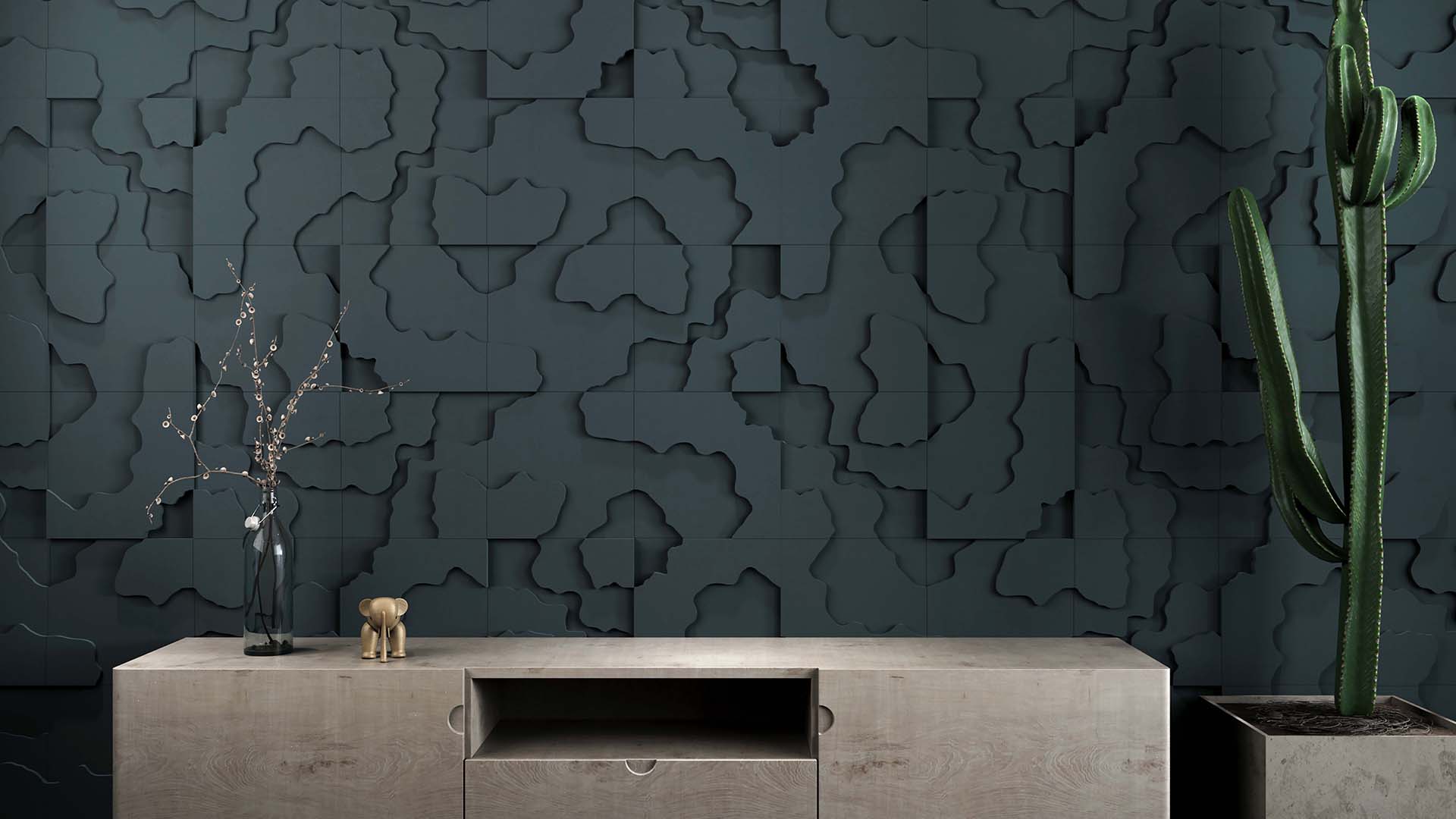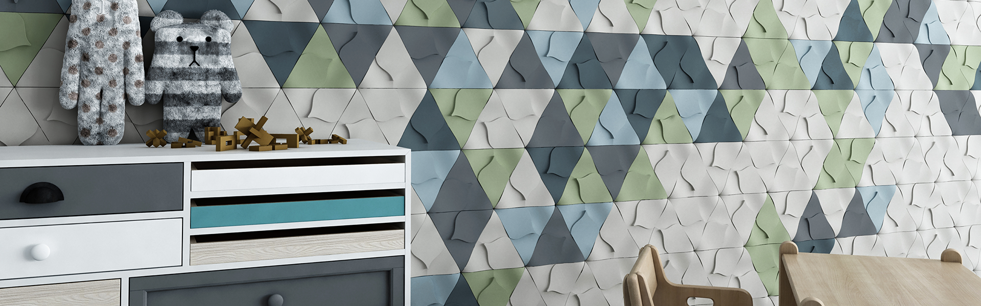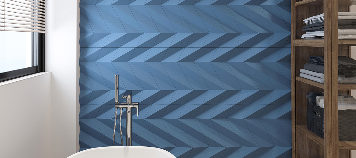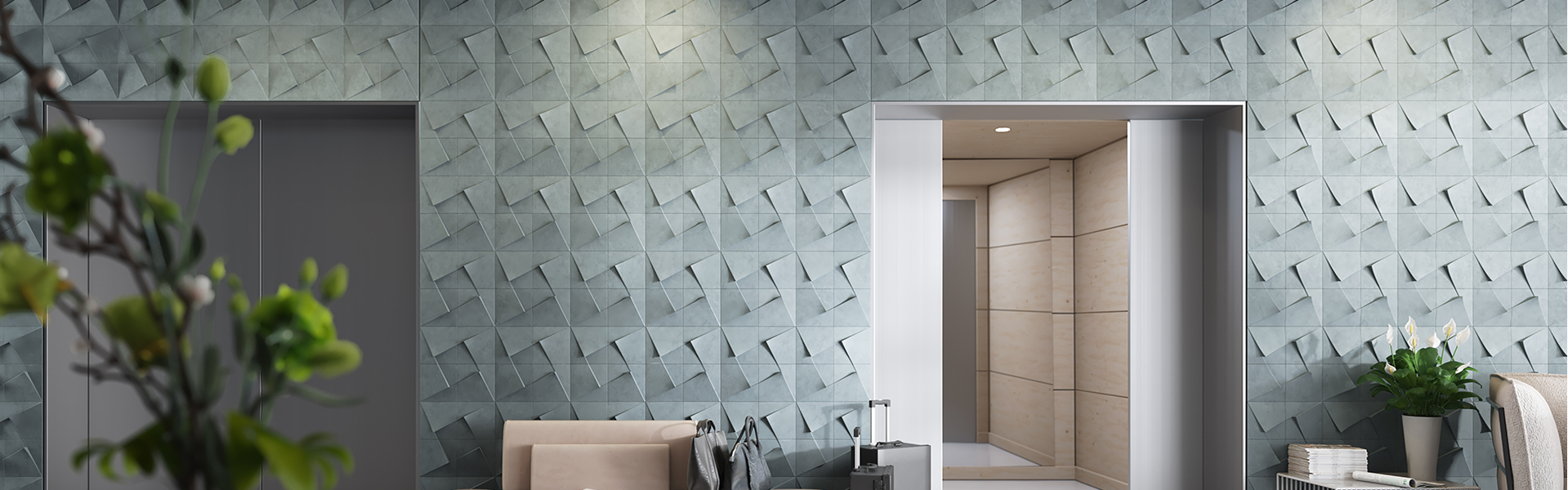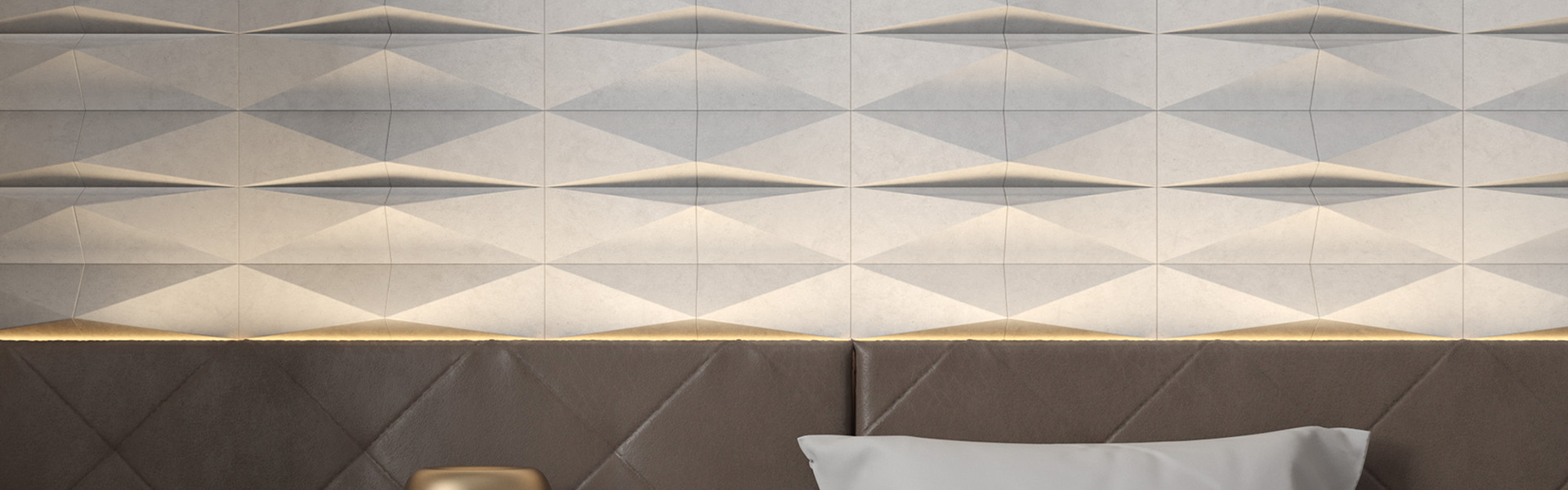 This 3D collection has a symmetric rhythm which gives exclusive atmosphere for large surfaces but it can also create the focus applied in smaller areas.