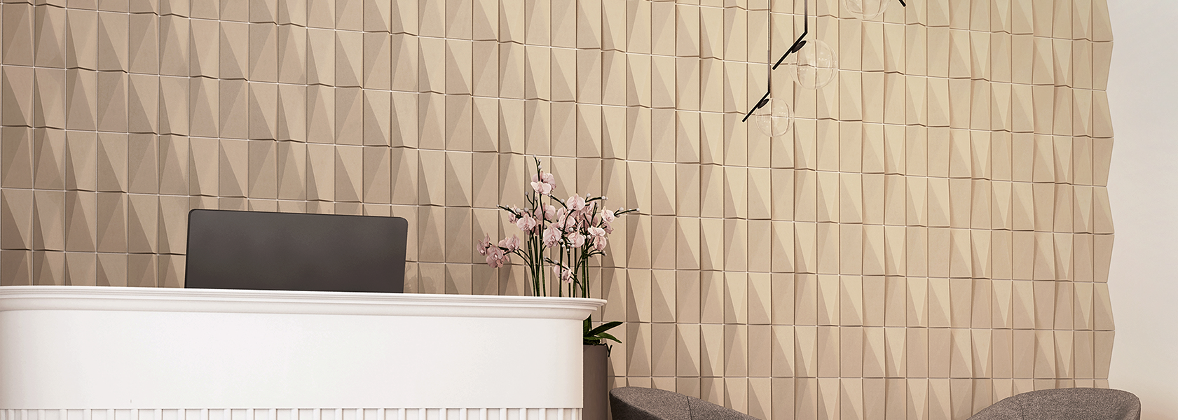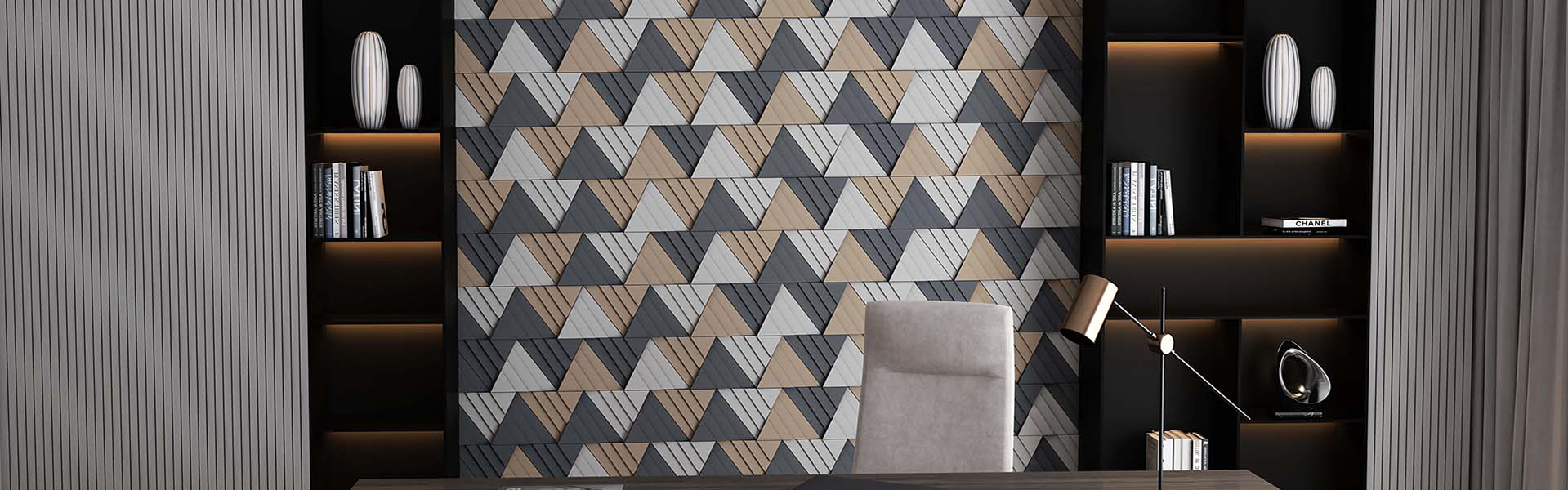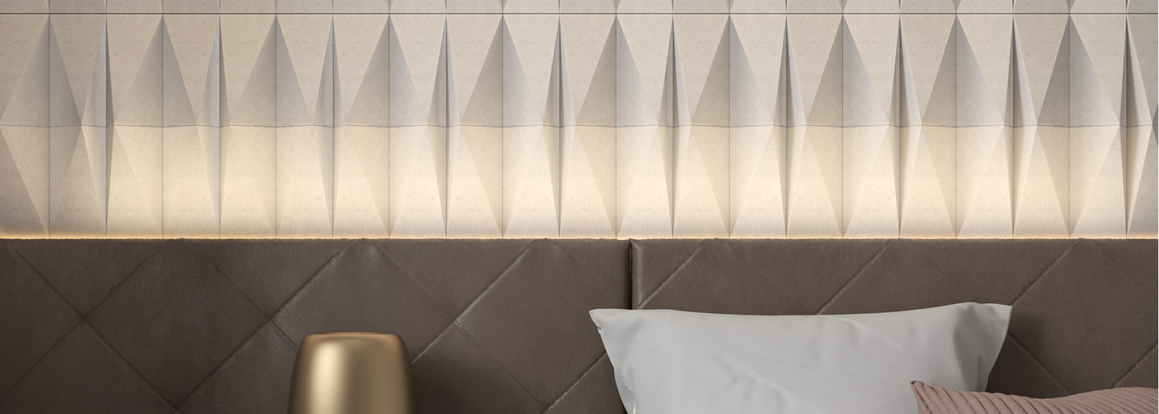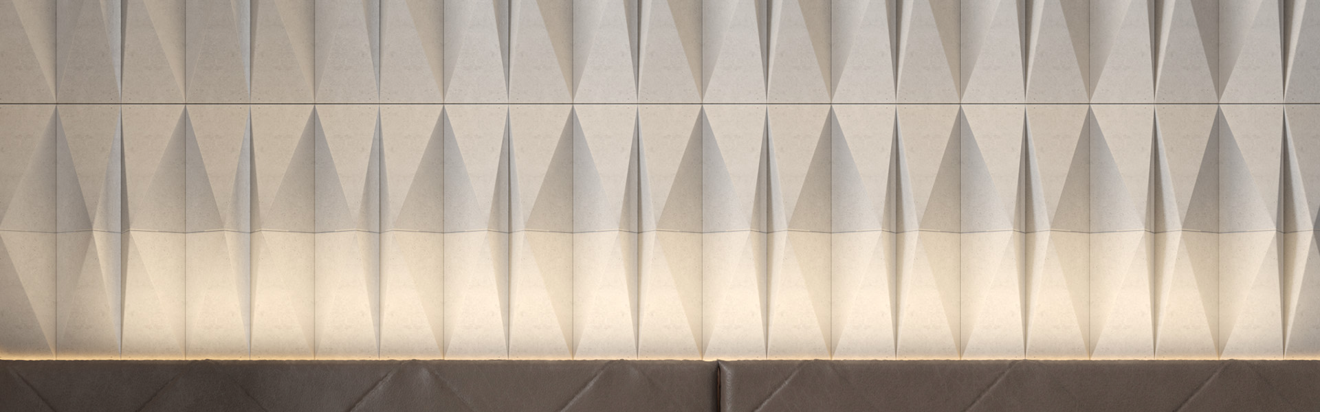 This 3D collection has a symmetric rhythm which gives exclusive atmosphere for large surfaces but it can also create the focus applied in smaller areas.
