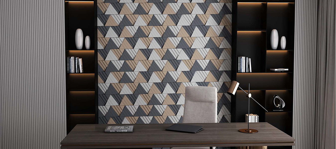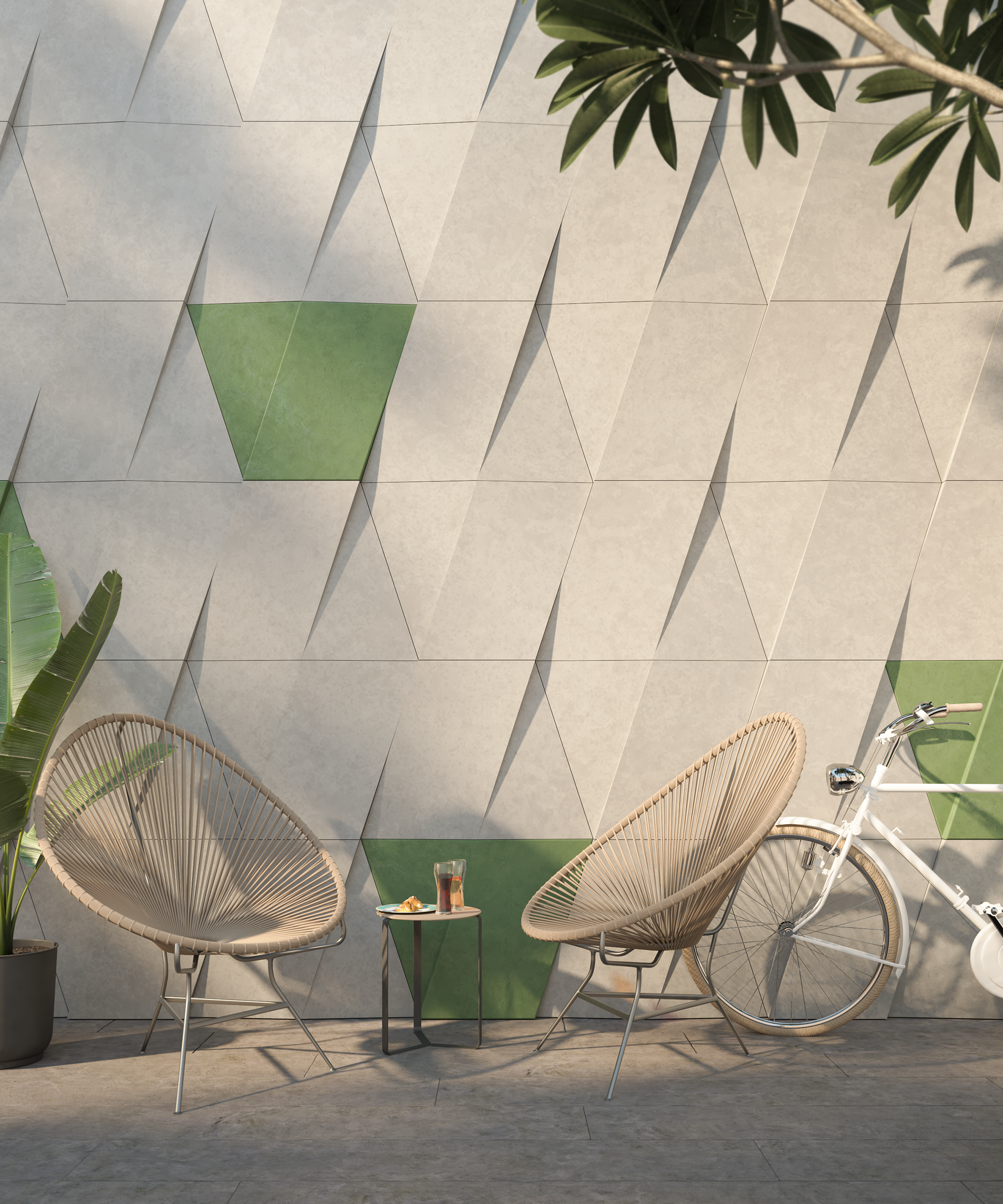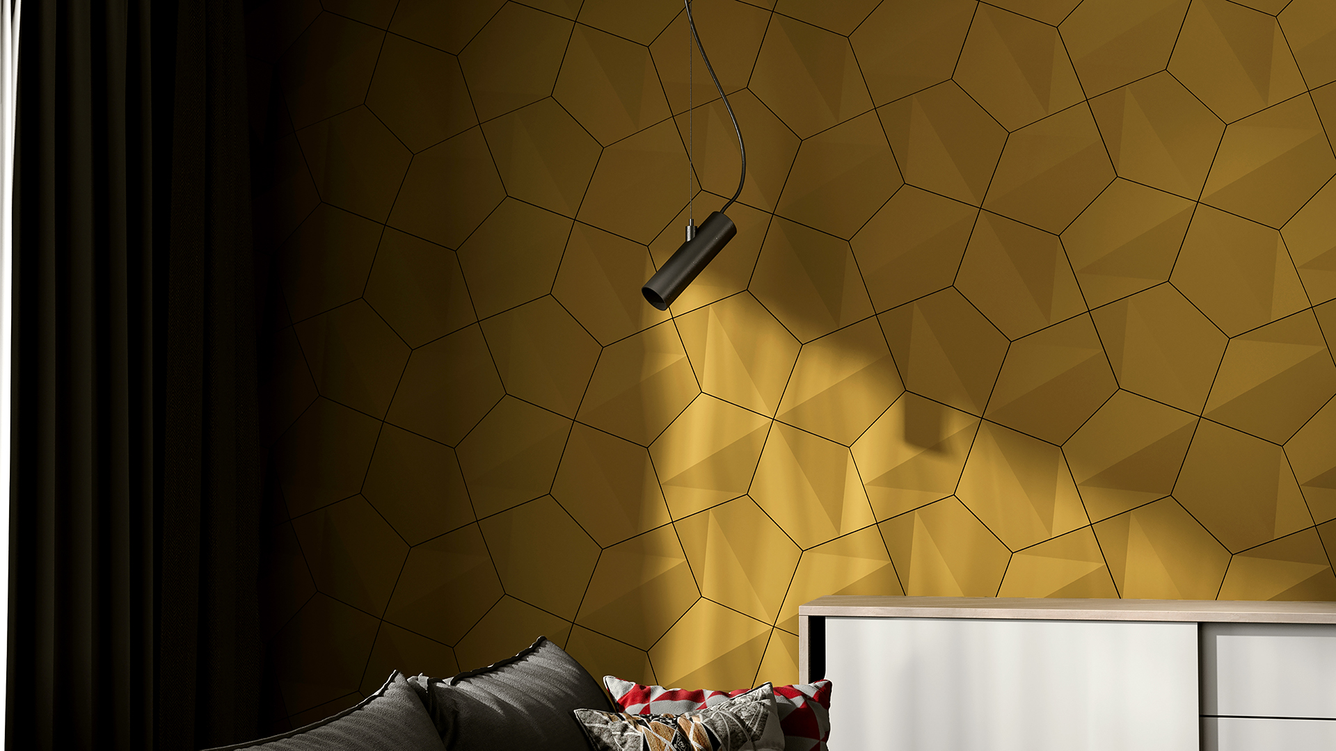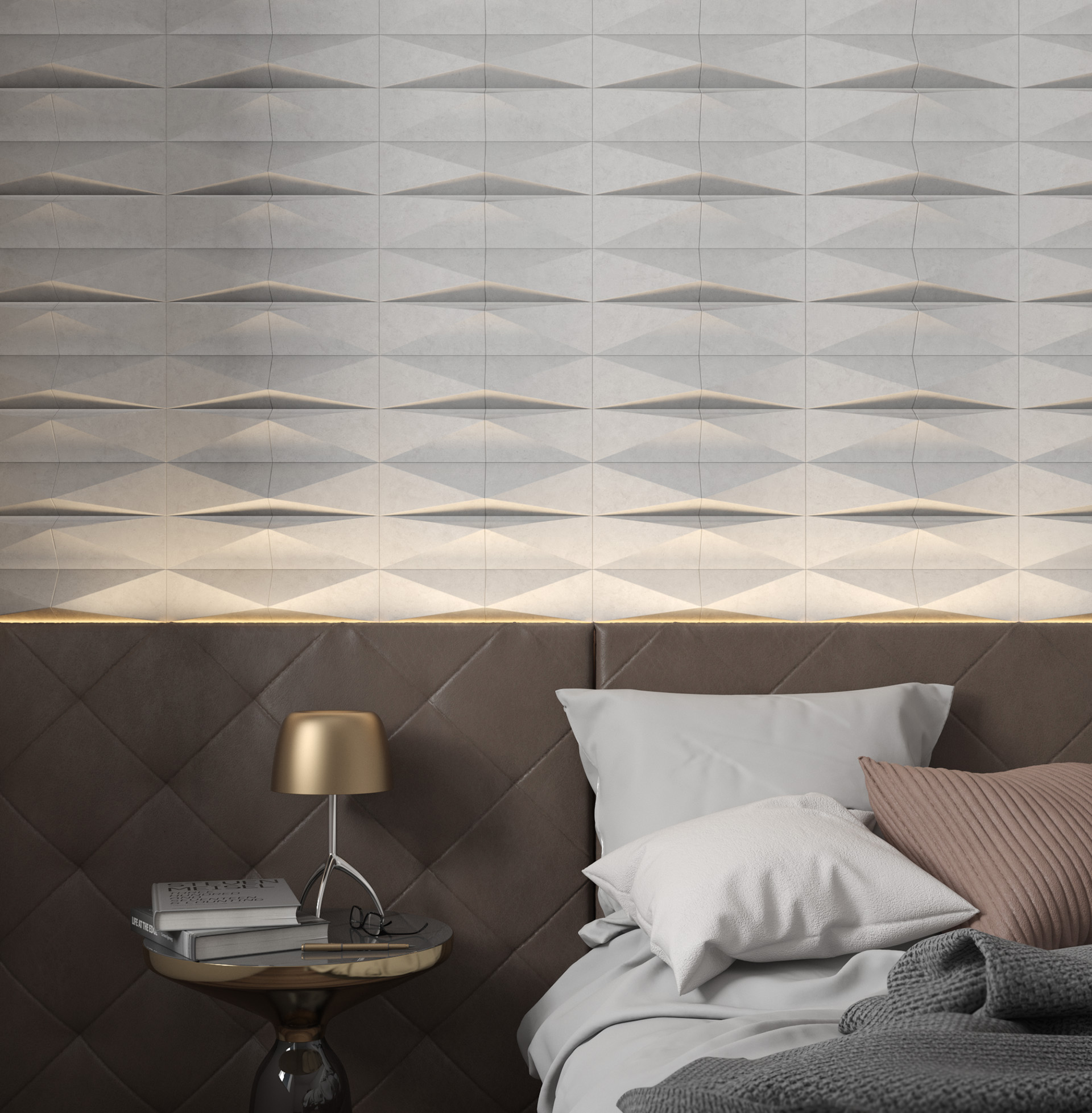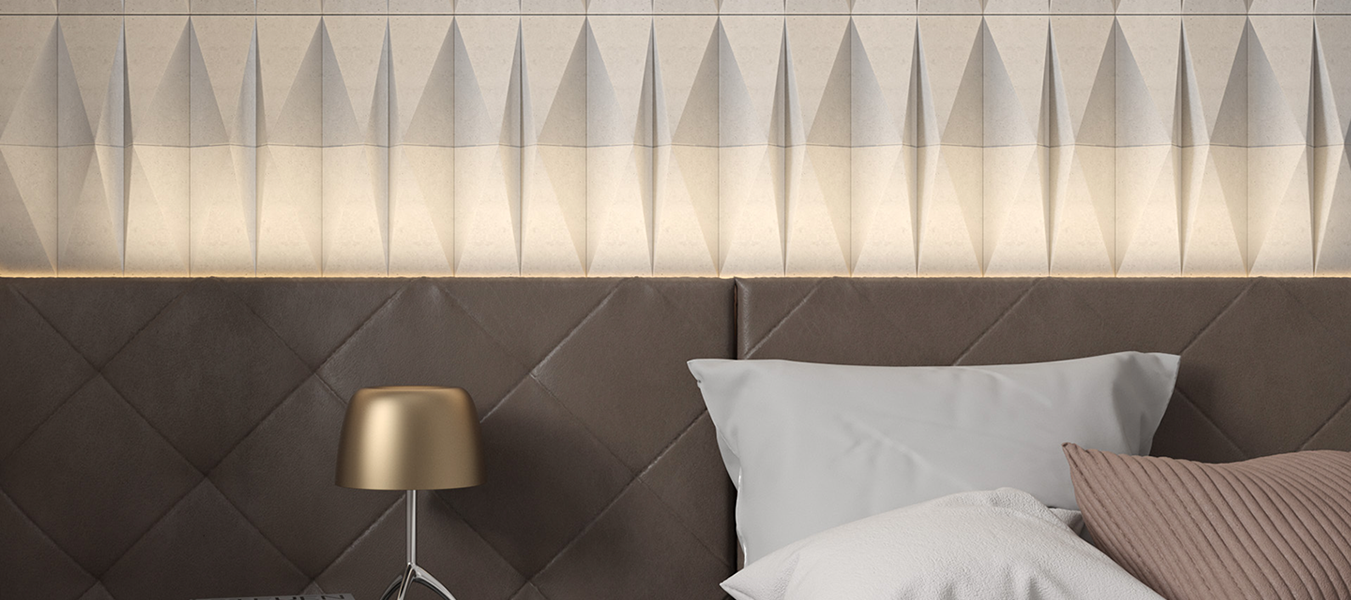 This 3D collection has a symmetric rhythm which gives exclusive atmosphere for large surfaces but it can also create the focus applied in smaller areas.