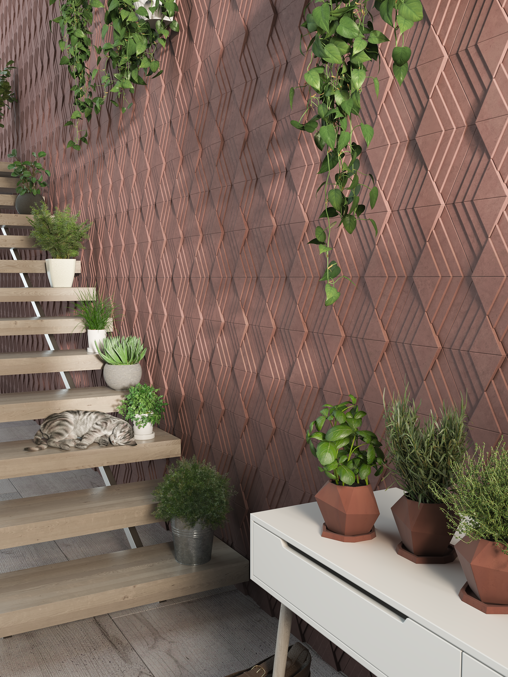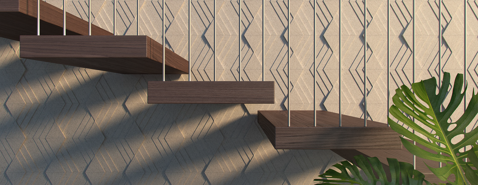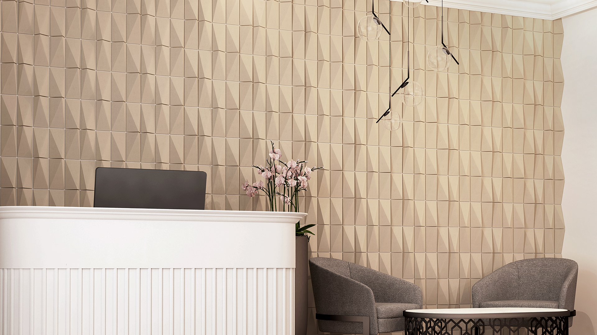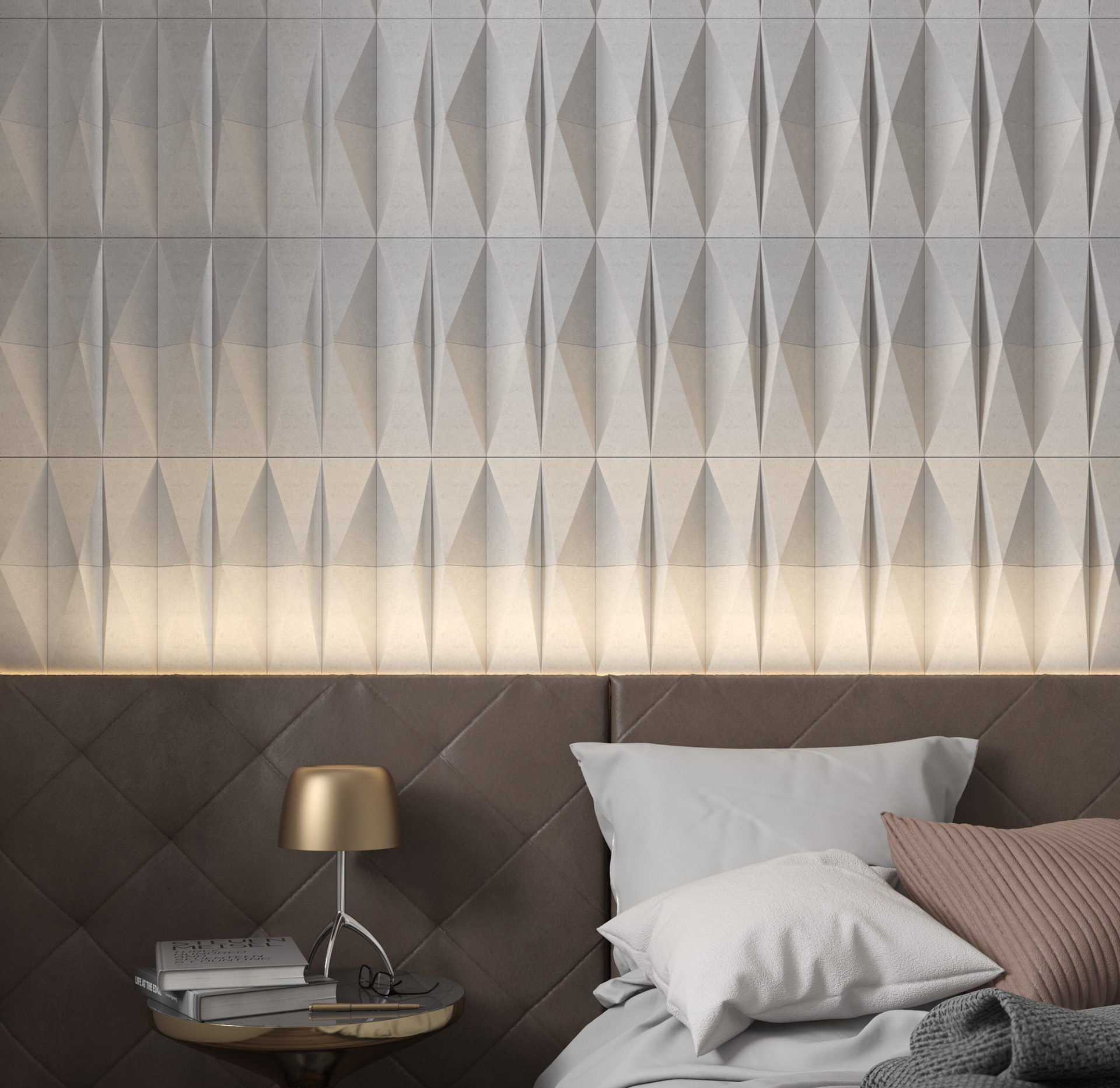 This 3D collection has a symmetric rhythm which gives exclusive atmosphere for large surfaces but it can also create the focus applied in smaller areas.