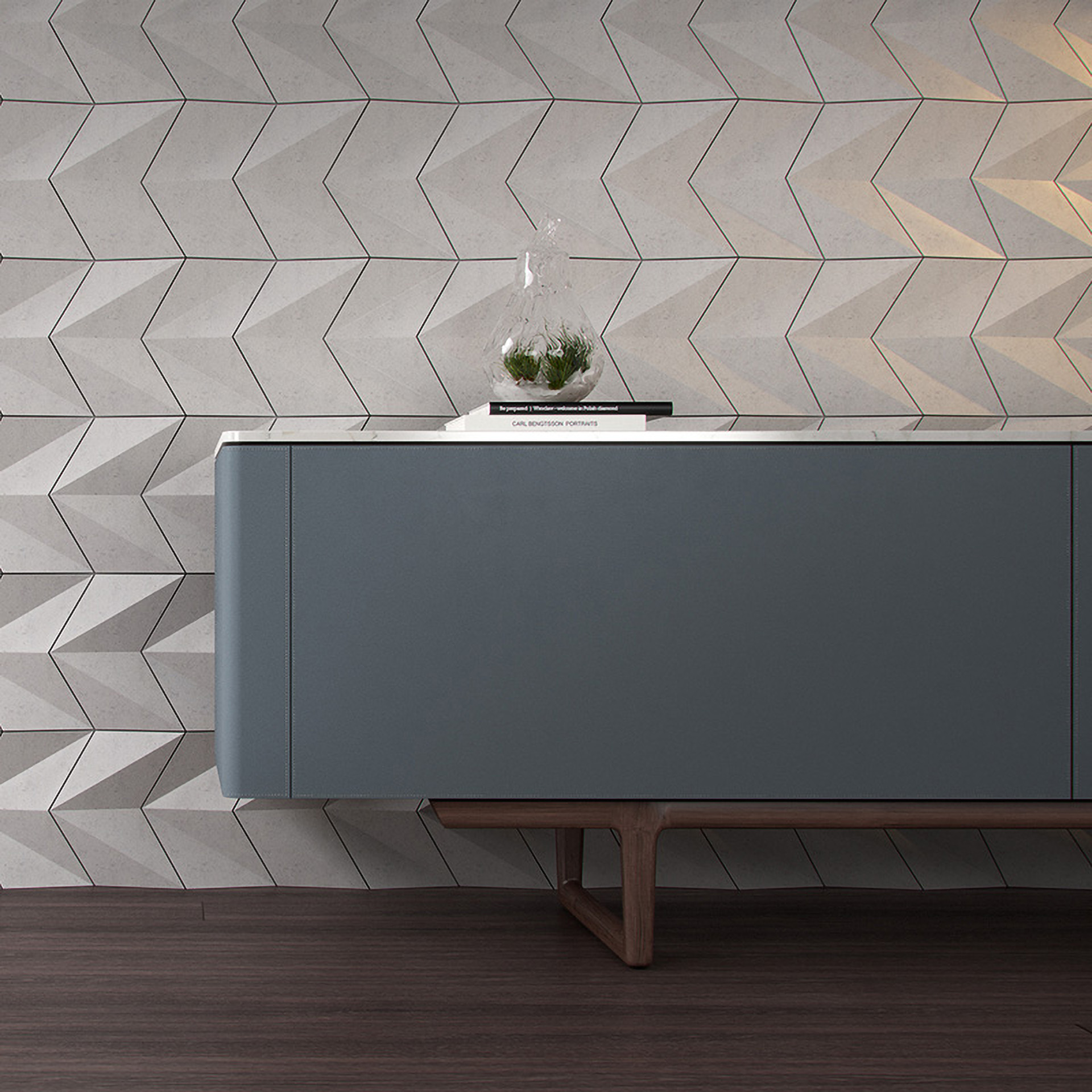 Simple lines, the play of angles causing variability and three dimensions in the layout makes the RELIEF collection special.