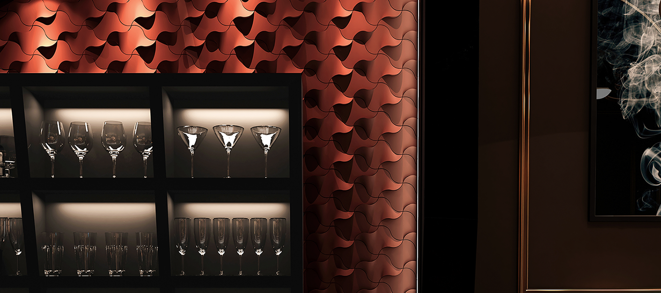 This collection expresses delicacy and luxury even on monumental in- and outdoor surfaces, facades exploiting the special visual effects of light.