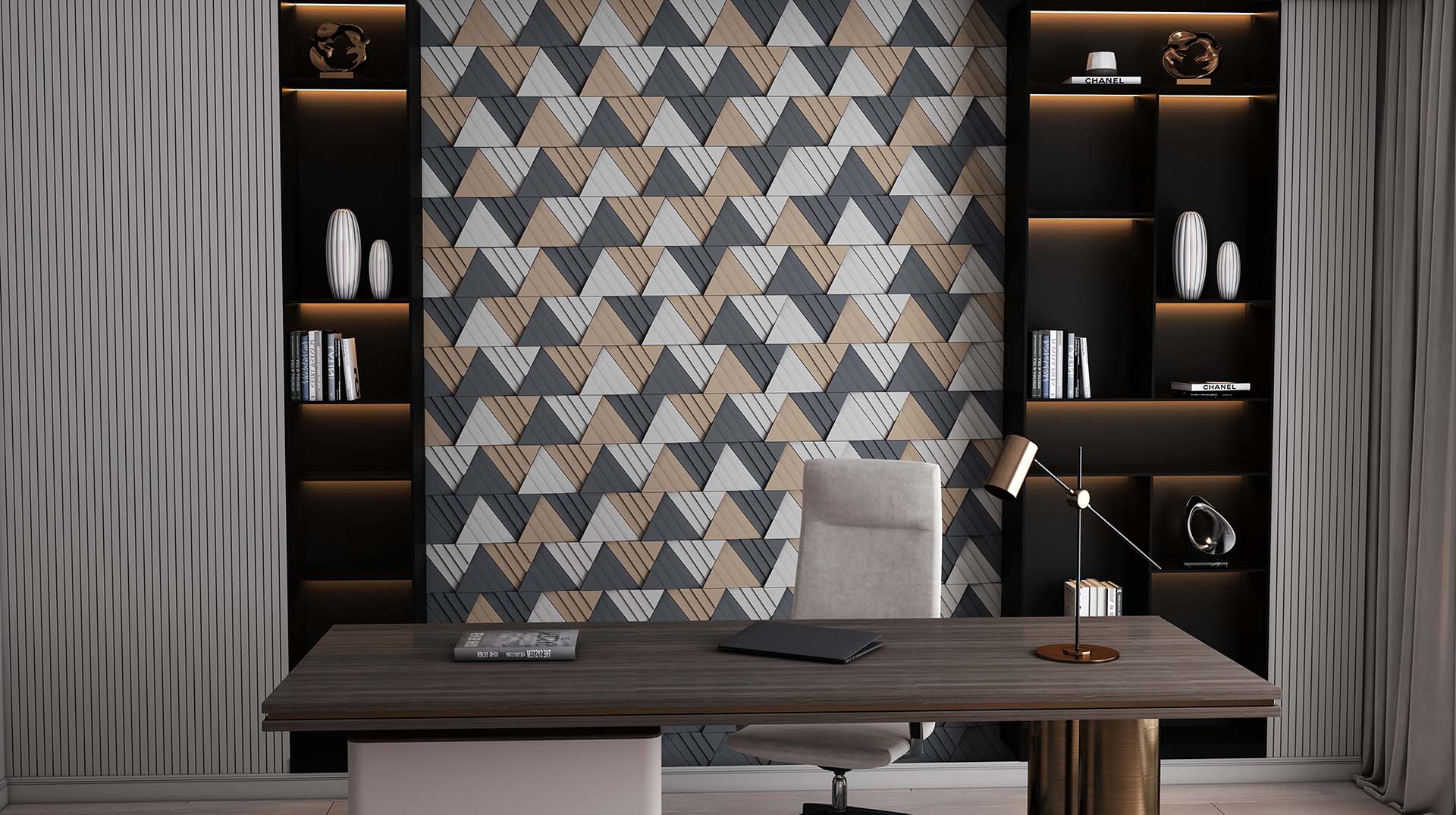The collection of UP AND DOWN gives great alternatives of the layout. The pulsing of the rhombuses gives dynamics to the surface, while the strict lines provide the atmosphere of an orderly unit. This 3D collection has a symmetric rhythm which gives exclusive atmosphere for large surfaces but it can also create the focus applied in smaller areas.