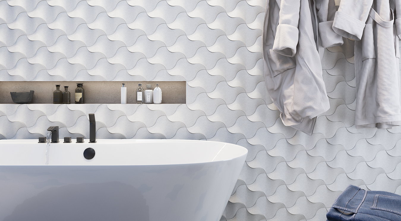 A PINWHEEL kollekció tervezői igyekeznek kizökkenteni a komfortzónánkból a beton játékosságának bemutatásával. A szélforgó finom fodrozódásának hatását kelti a burkolóelem 3D-s optikai játéka. Az íves vonalak lágysága és változó mélység adja a kollekció dinamizmusát. A PINWHEEL kétféle eleme lehetővé teszi, hogy az elemek arányát, és az általuk kiváltott hatást a tér funkciójához igazítsuk.