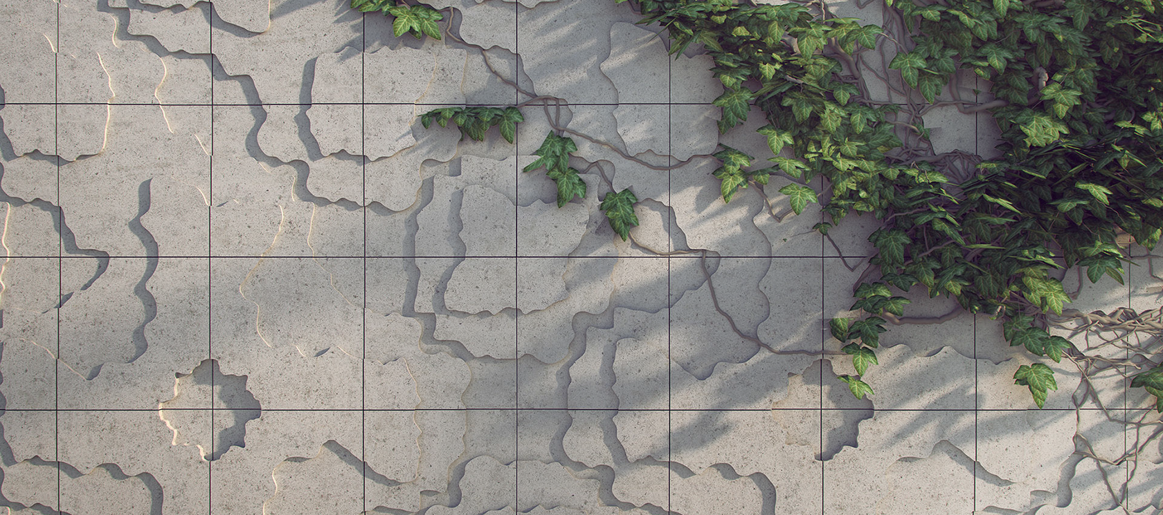 Monumentális felületeken sem kelt monoton hatást, és kihasználja a fény- és árnyék nyújtotta játékosságot.