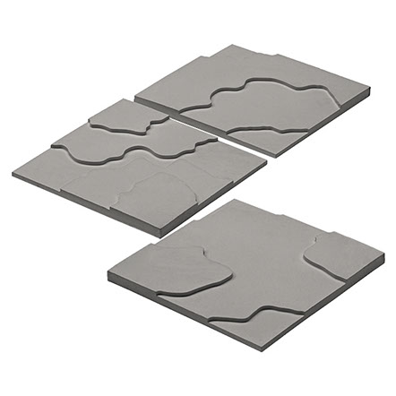 A természet szüntelenül mozgásban lévő ereje és aszimmetrikus rendezettsége ihlette a RIVER kollekciót. Foltszerű mintázata a folyó éles körvonal nélküli, de biztos hatását idézi. A 3D-s kollekció 3 különböző eleme biztosítja a variálhatóságot és a harmonikus dinamizmust. Monumentális felületeken sem kelt monoton hatást, és kihasználja a fény- és árnyék nyújtotta játékosságot.